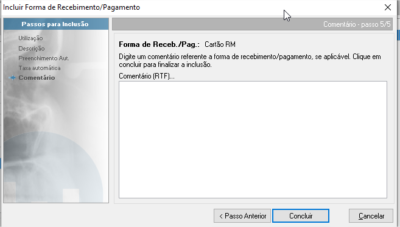 No próximo passo, pode incluir um comentário sobre está forma de pagamento/recebimento, para passar informações que sejam necessárias no momento que for utiliza-la, por exemplo.